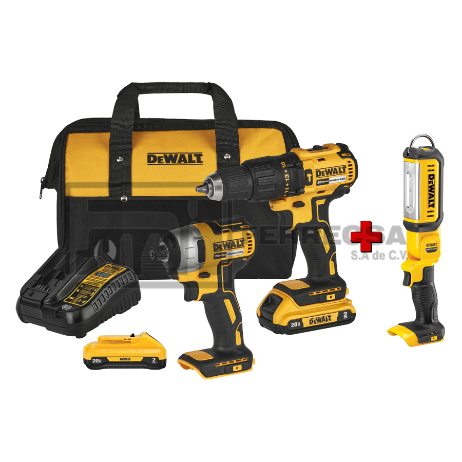 COMBO 20V 2AMP BRUSHLESS ROTOMARTILLO-ATORNILLADOR DE IMPACTO DCK276D2-B3+DCL050 DEWALT